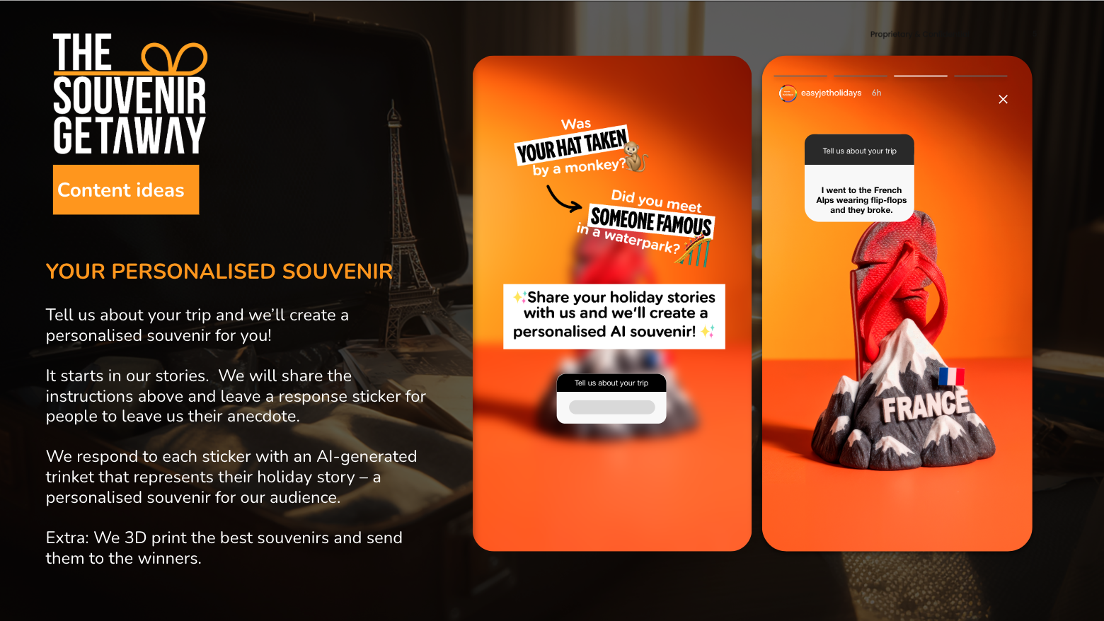 The second phase of this campaign centred around retelling our followers’ holiday stories through truly unique AI-generated souvenirs.
